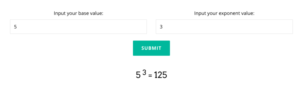 In this example, the page contains two form inputs: one to capture the Base value, and one to capture the Exponent value.