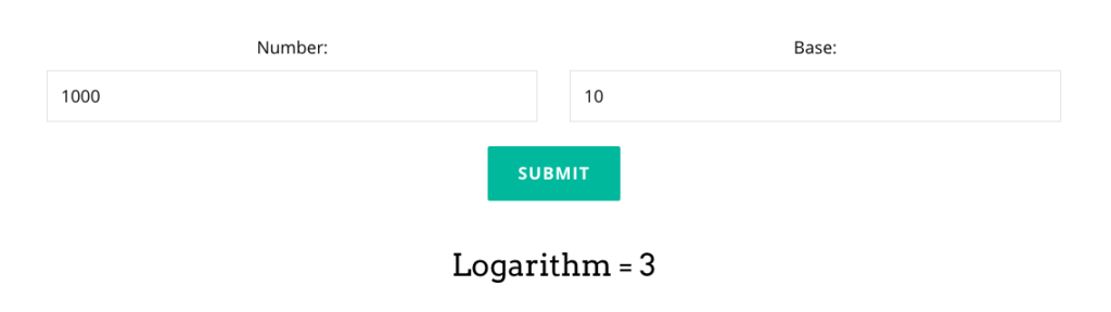 The “Log(Number, Base)” formula returns the logarithm for the user’s input. The base can be dynamic and controlled by the user, or entered into the calculation as a constant (ie. a base of “10” to calculate the common logarithm).