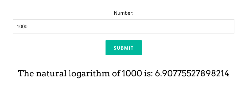 The Natural Logarithm can also be computed using a combination of two NCalc formulas “Log(Number, Exp(1))”, where Number is the user submitted variable and Exp(1) returns the value of e.