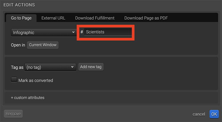 You may also choose the same page that you are already on within the “Go to Page” action if the goal is to simply go to another part of the page instead of going to another page.