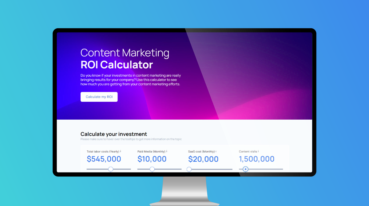The Content Marketing Calculator is an interactive live and gated calculator that includes values that correspond to movement along the slider. This ROI calculator is a single page experience where calculations happen at the …