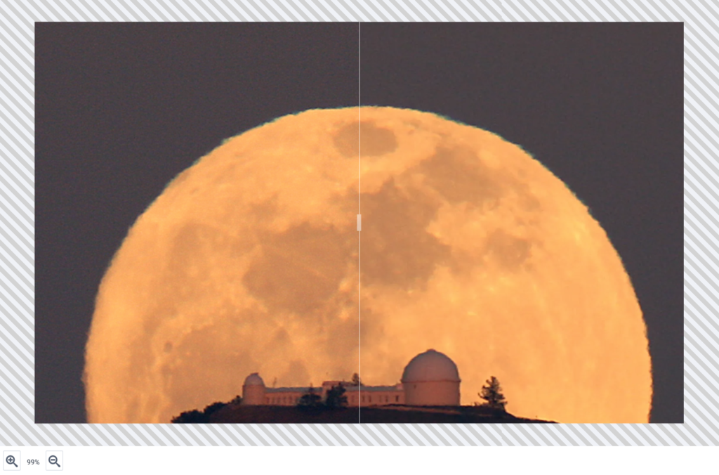 This will open a lightbox with the image split into two halves. The left half of the image is the original version and the right half is the optimized version. You can also click and drag the border between them to get a bigger look at each version of the image.