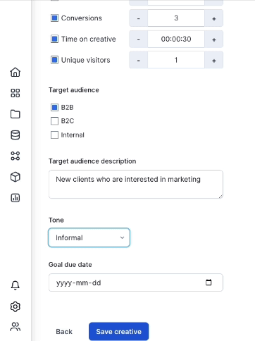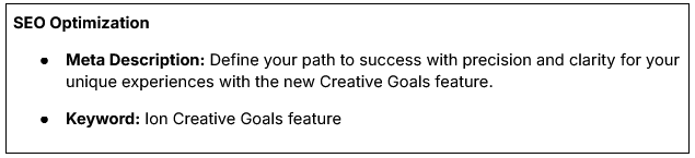 With the new Creative Goal Feature, define your path to success with precision and clarity for your unique experiences. Define targeted objectives, align expectations, monitor progress, and cater to your audience better.