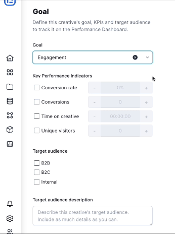 Increasing your webpage’s success begins with a strategic approach. The new Creative Goal Feature will allow you to set customizable goals that focus on KPIs and target audiences to help you track the performance of your creative.