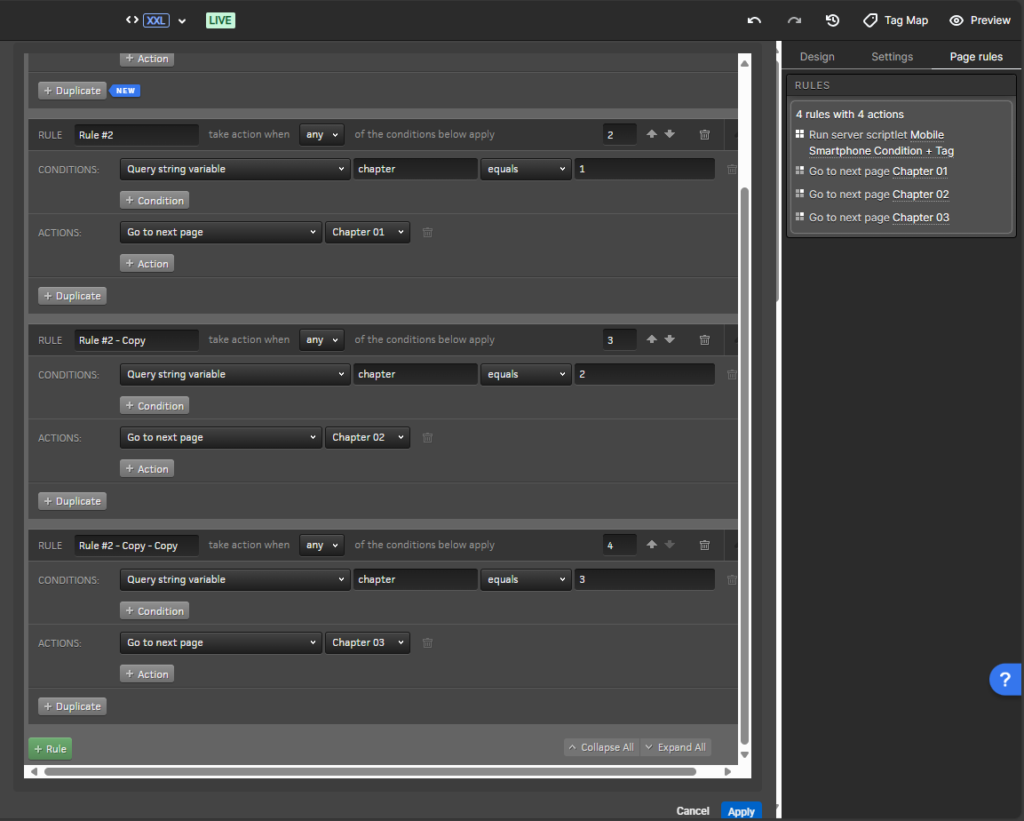 Now, similar to how we set up the rules for the query strings, we can set rules so that if the user comes in with the URL https://martech-tools.postclickmarketing.com/chapter1, they will be sent to the chapter 1 page.