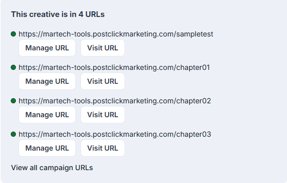 You’ll notice that one of these should be the default URL for your Creative. Users who use the default URL will remain on the landing page.