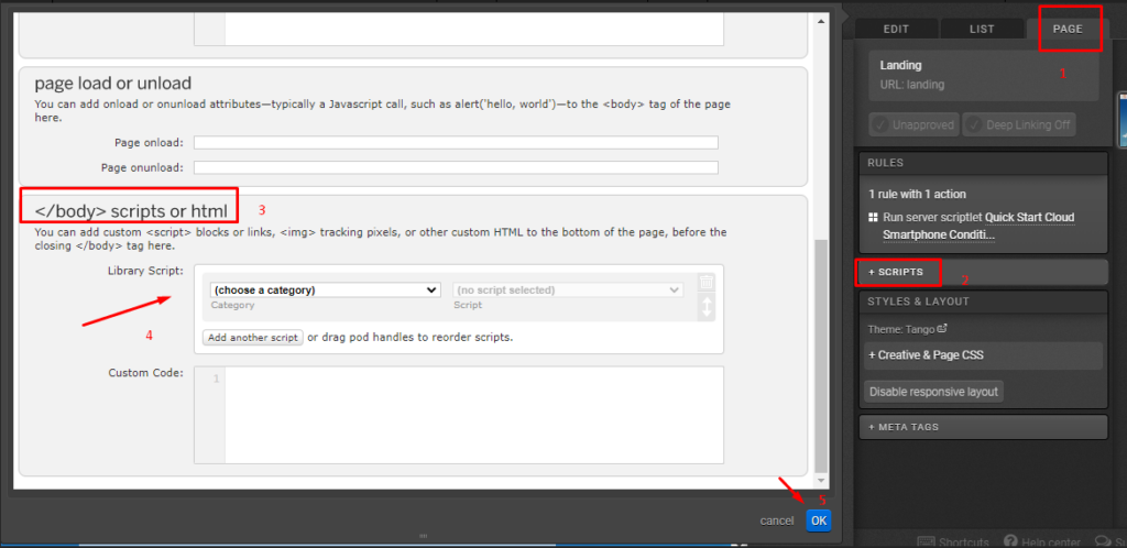 – Or you can add the Script below to your Libraries (Dashboard > Libraries > Scripts) and then apply it to the Body of the Page: