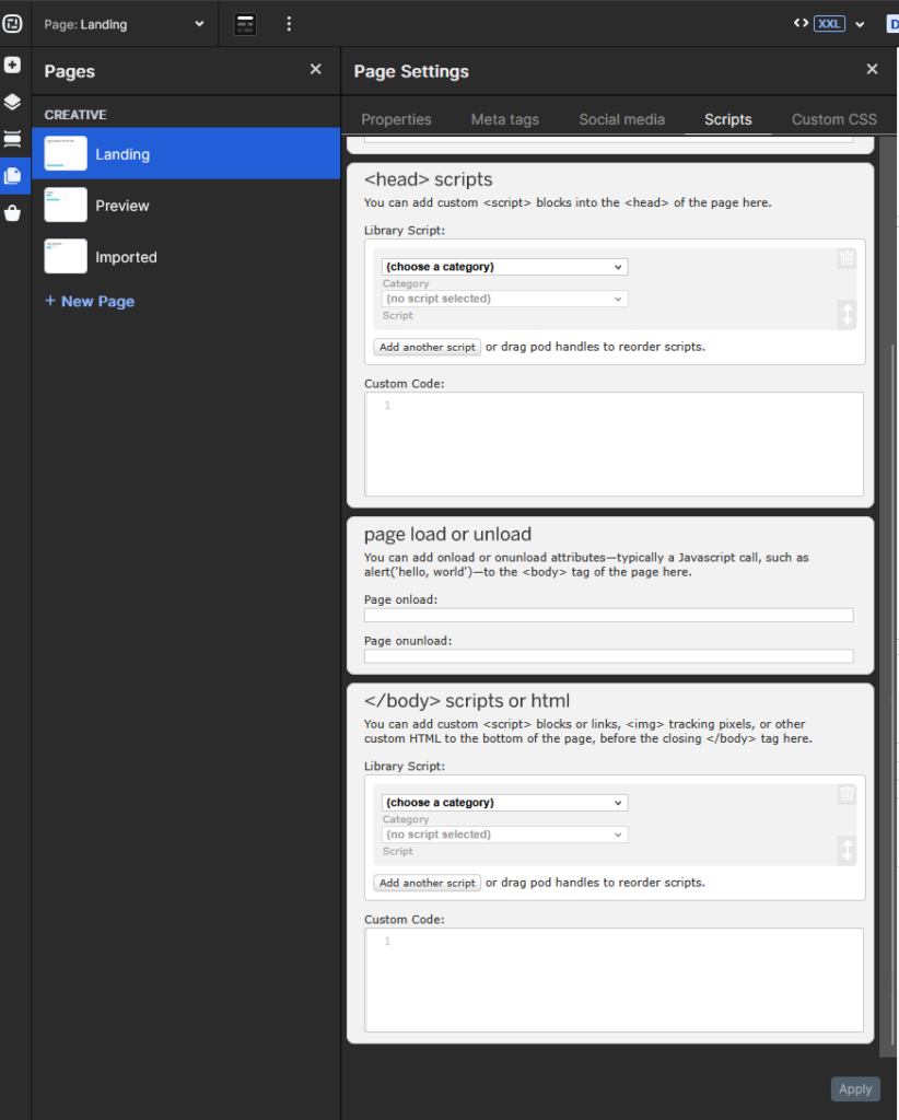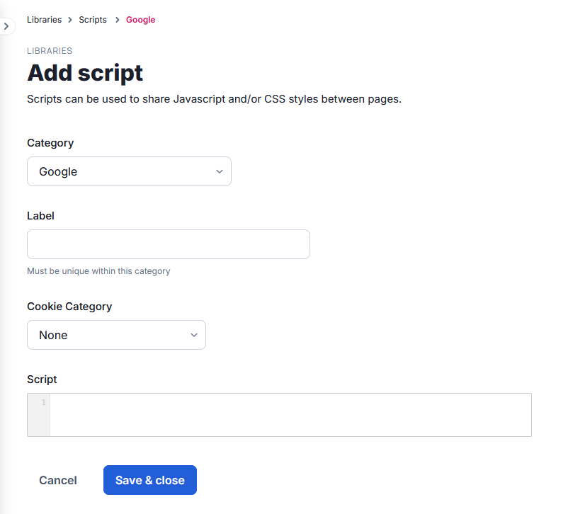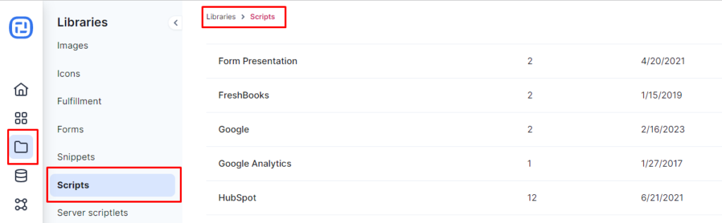 Dashboard → Libraries → Scripts