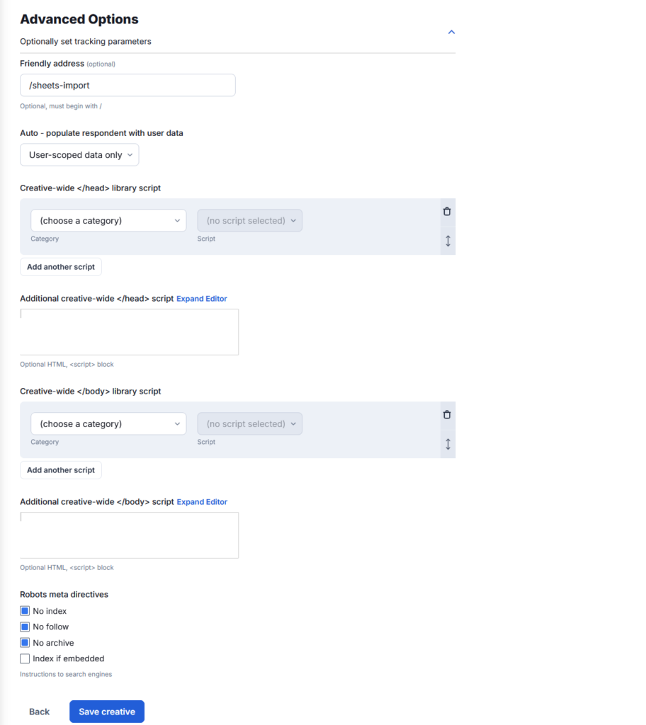 - Scroll to Additional creative-wide script