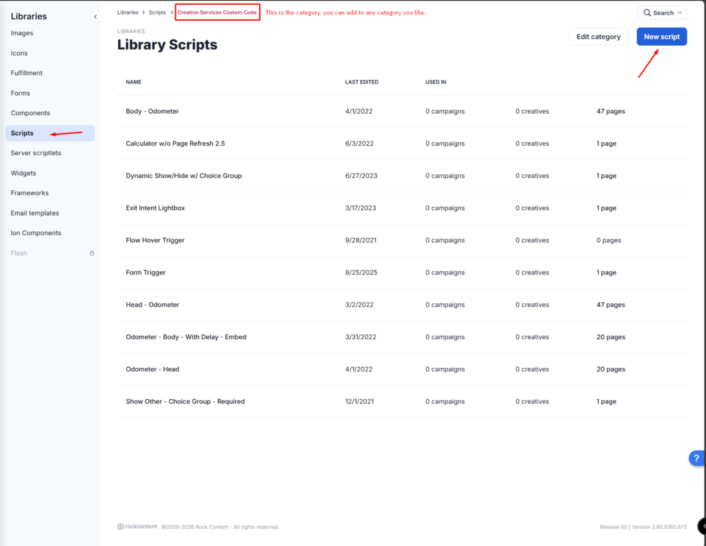 2. Go to Libraries > Scripts > Custom and click New Script.