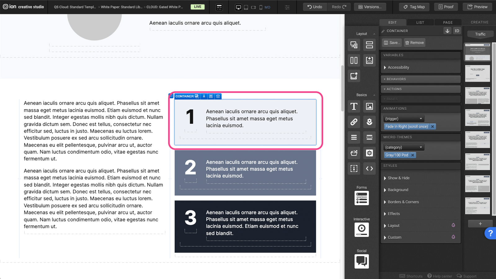 Step 1: To update the content within your Tabs, begin by selecting it on the canvas.