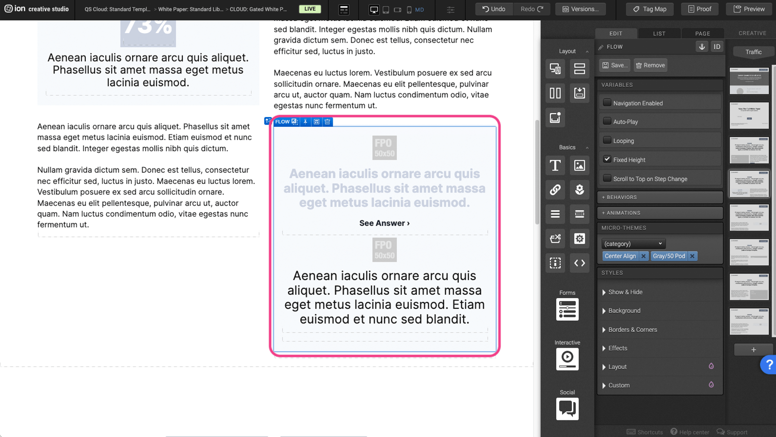Step 2: Within the Flow, locate the first Flow Step at the top. You can edit the contents within the columns, add content, or remove all of the content from the Flow Step.