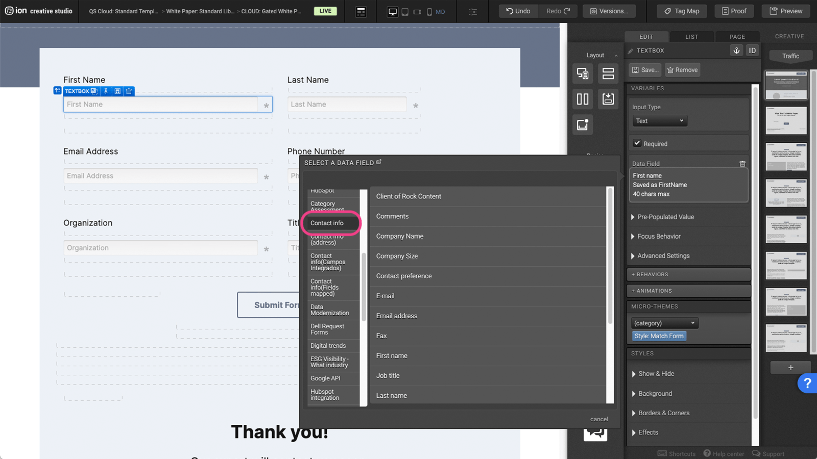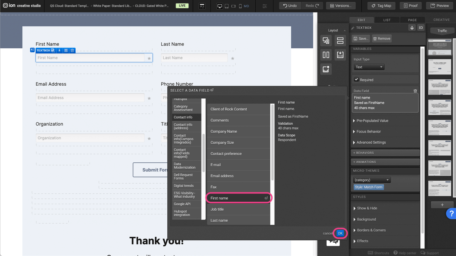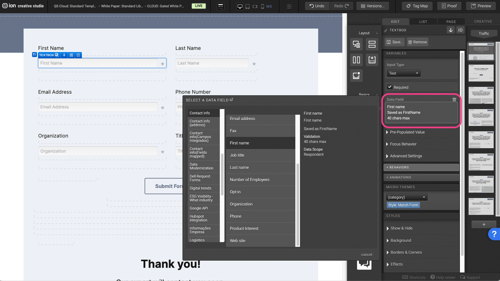 Step 1: To edit the different Form inputs, select one of the Textboxes.