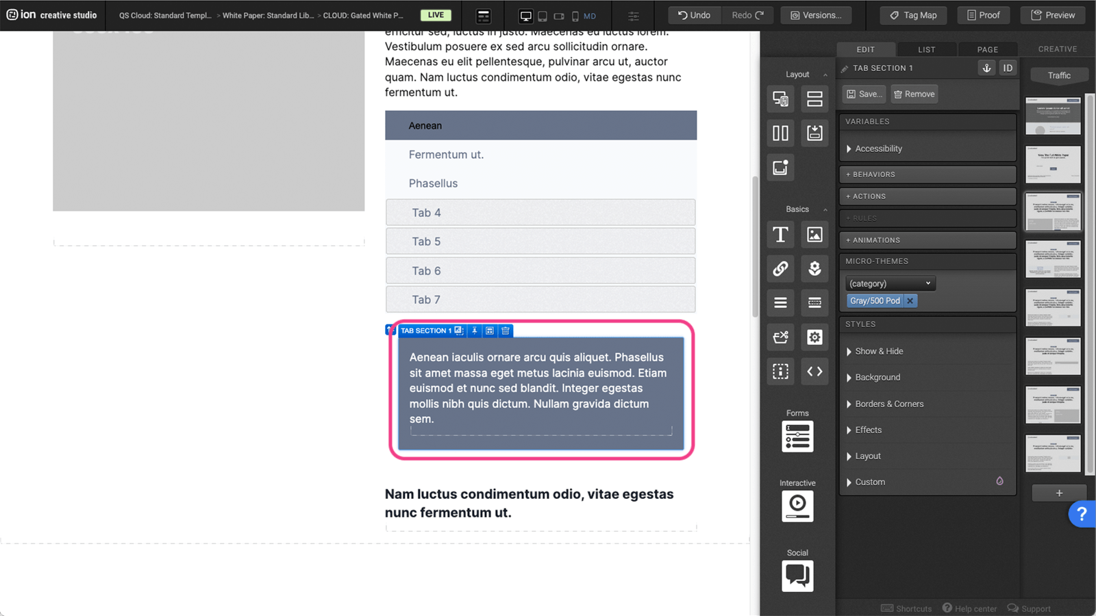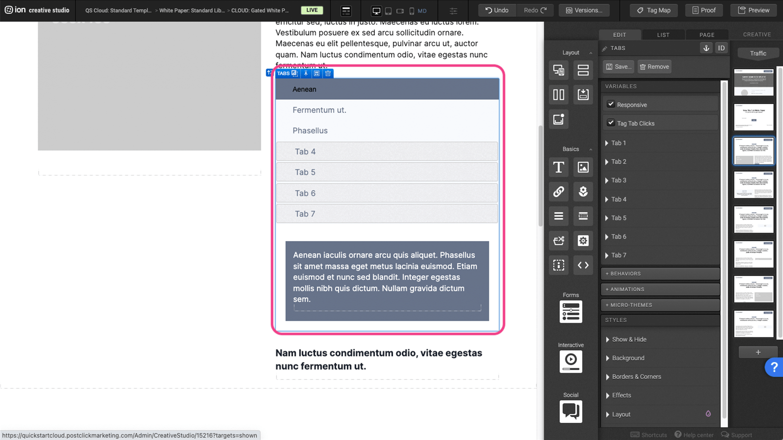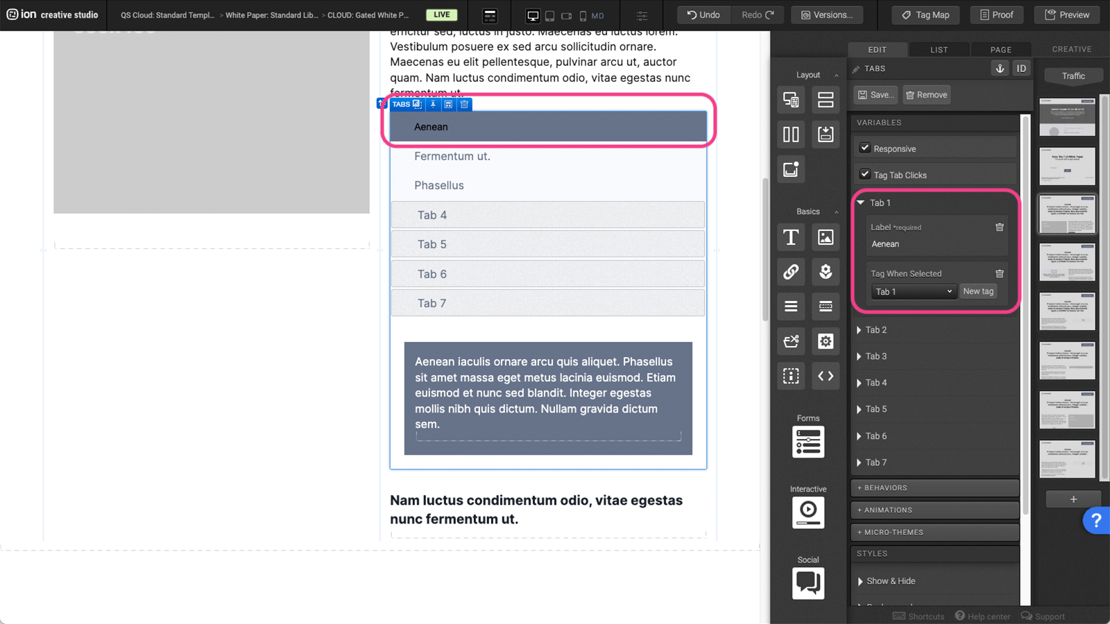 Step 2: From the Variables settings, select a Tab tab dropdown that contains content within it. Here you are able to edit the Label and add a Tag.