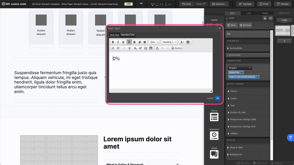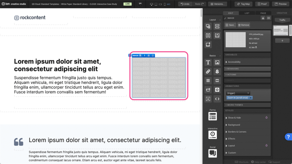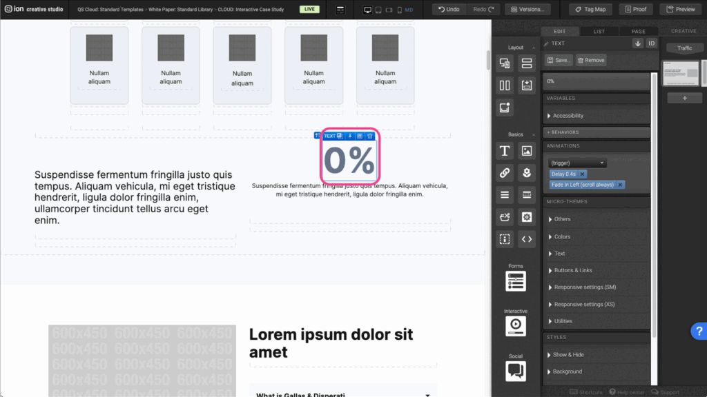 The Interactive Case Study is a low complexity, standard experience. This template is excellent for changing a static piece of content into an engaging interactive experience. With unique animations, reveals and flows, this template presents information in a simple and easily digestible manner. When visitors reach the end of the experience, they are presented with 2 call to action options.