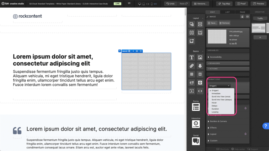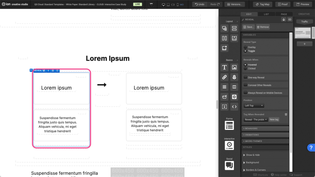 Step 1: To edit when the reveal container will appear, first select the Reveal element on the canvas.