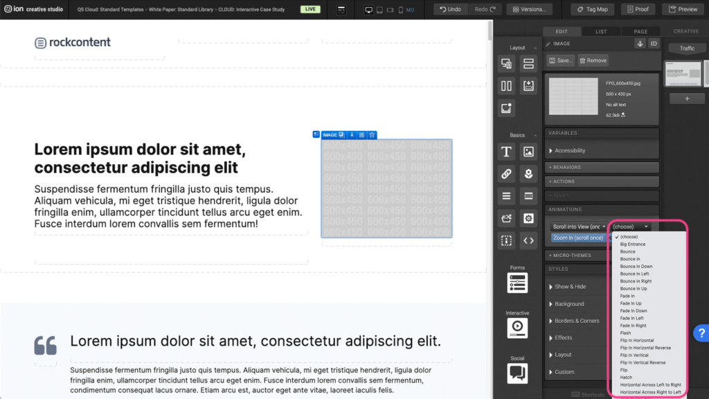 Step 3: After selecting the animation trigger, another (choose) dropdown will appear. Expand the second dropdown to select the type of animation you want to apply.