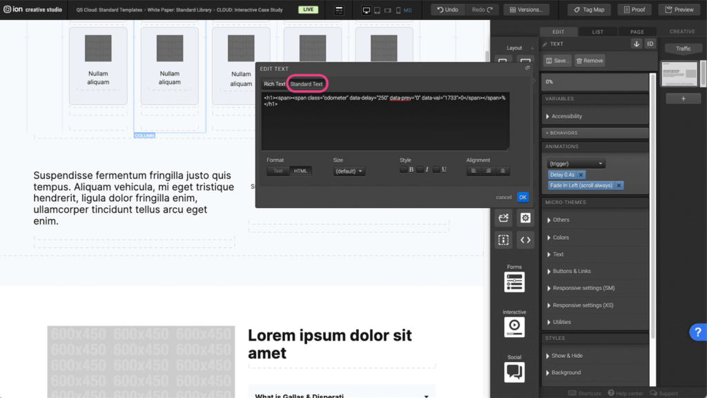 Step 3: In the edit window, click on the Standard Text tab to open the odometer settings.