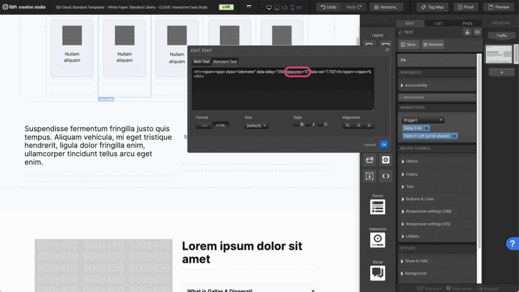 Step 5: To adjust the end value, change the number within the “ “ in the following line of code: data-val=”12″ then press OK to save. *Please note that the odometer will only display in preview and on the live page.