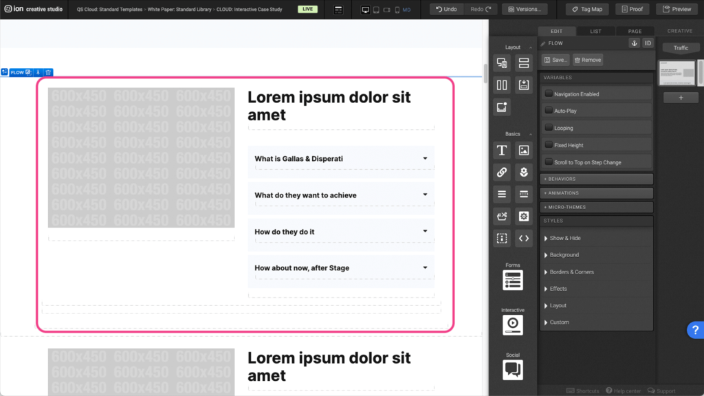 Step 2: Within the Flow, locate the first Flow Step at the top. You can edit the contents within the container, add content, or remove all of the content from the Flow Step.