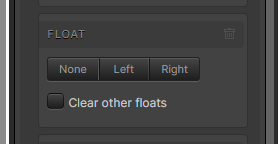 Float – Content can be aligned left or right by using float in the layout panel. Float must be applied to each component individually unlike the alignment micro-theme, which can be applied to the outer most parent component resulting in all components within it to display according to the alignment selected. It is recommended to attempt to apply other alignment tools prior to using float. Float will force the component left or right but can only be adjusted in other viewports using custom CSS. Other horizontal alignment abilities allow for alternative alignments in smaller viewports using the micro-themes.