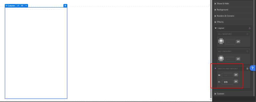 1. We first set a fixed height to a our column. In our example, we set the height to 570 pixels.