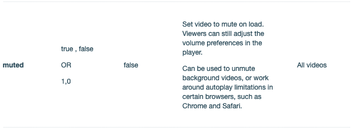 | Autoplay Video | Control color (used to specify the color of the video controls – defined using a hex number). | Loop Video | Loop Video |
