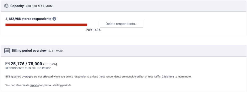 Below your capacity metrics, you will see options to delete respondents from your console.
