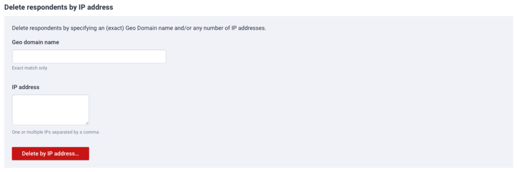 You also have the ability to delete respondents by IP address and Geo domain location.