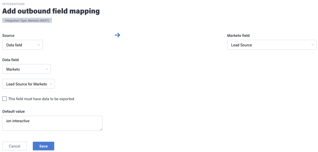 - Repeat these steps for each Marketo data field you seek to save into Ion data collection
