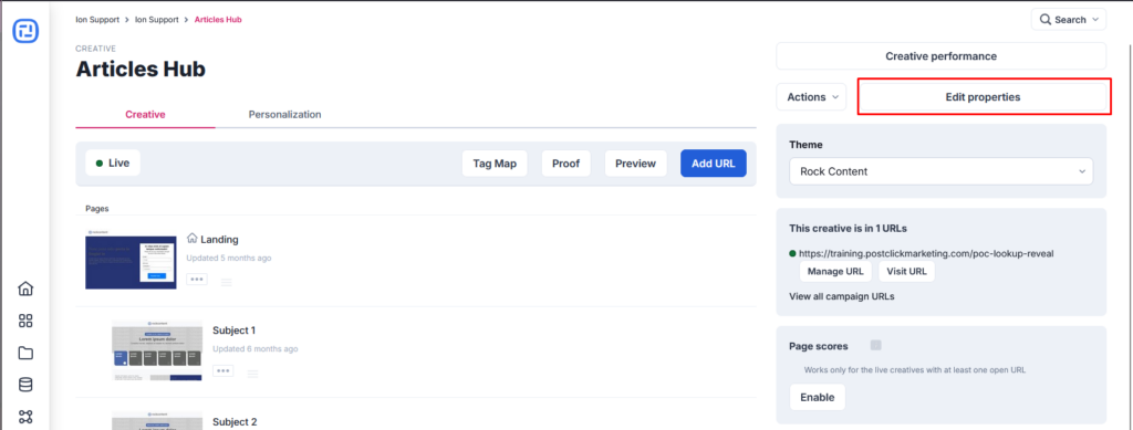 At the Creative level, these same changes are possible by accessing Creative > Edit properties. And after accessing it, you must perform the edits, simply hit save.