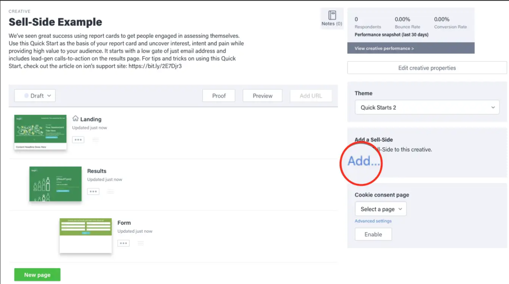 Within the Sell-Side tab, you will have the option to add one or more pages to the Sell-Side experience. This is typically the page that shows results of your interactive experience so you can quickly gather insights on a given user when viewing the Sell-Side.
