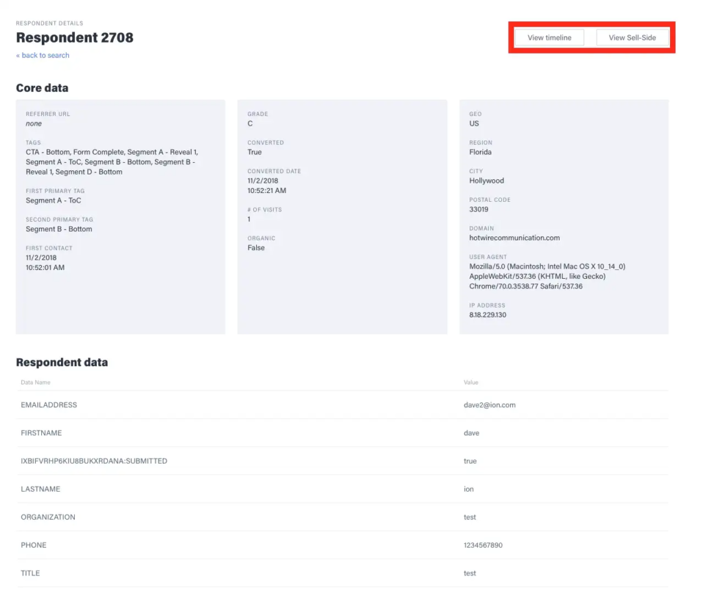 One option is to click either the “View Timeline” or “View Sell-Side” buttons found at the top of a respondent record that you have searched for.