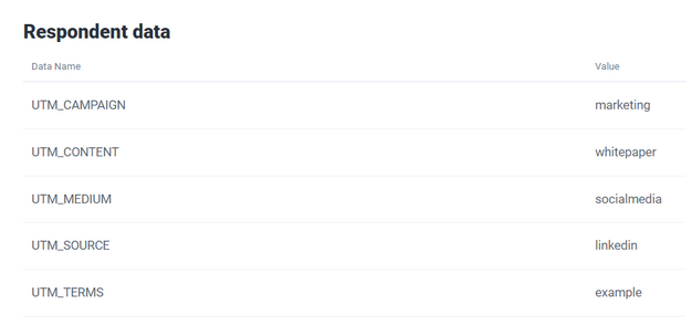 Once a respondent visit your URL that has the UTM Parameters, they will be automatically saved as per the below screenshot.